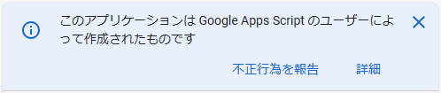 「このアプリケーションは Google Apps Script のユーザーによって作成されたものです」と表示される